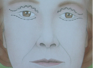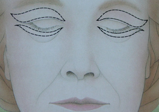 Figure 3: Excess skin is removed from the lower and upper eyelids. The incisions are positioned in the natural skin folds.