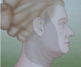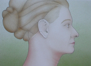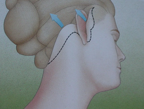 The skin is pulled upwards and backwards from the temple area. The same technique is made both in front of and behind the ear and then the excess skin is cut off and removed. In some cases, the fat deposits under the chin and neck are removed so that the sagging muscles and supporting tissue are tightened (Figure 4).