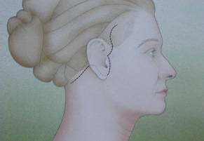 Figure 2: The incisions made on both sides of the face are the same. It starts from behind the hairline on the forehead, wraps around the ear and ends at the nape of the neck.
