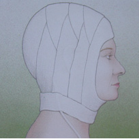 A small thin tube can be placed behind the ear to drain the blood that may accumulate under the skin after surgery. The face and neck are kept in a large, loose bandage for several days (Fig. 6).