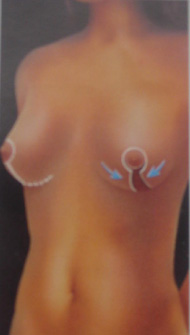 A piece of skin is removed from the upper part of the breast to move the nipple and aerola to their new position.